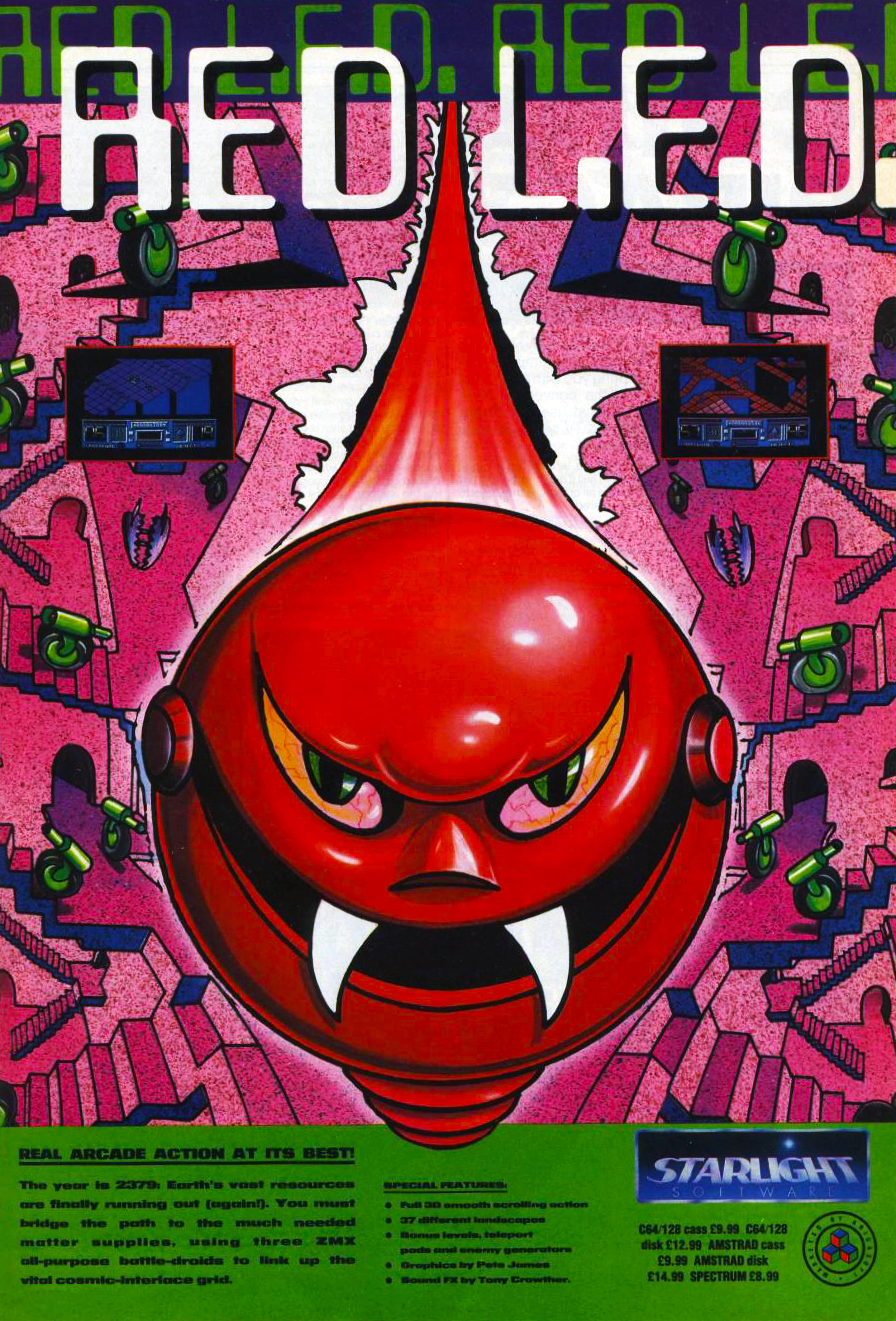Nem tudom, hogy kit mennyire fogott meg a  Red L.E.D. (avagy amerikai címén a Battle Droidz) reklámjában főhelyre került, realisztikusan véreres szempár, de az 1987-es program homályos emlékeim szerint egész kellemes élmény volt. A szűk, egyórás időlimittel ellátott program lényegében a Spindizzy komplexebb verziója volt, három irányítható karakterrel és brutálisan sok, ellenféltől nyüzsgő pályákkal.