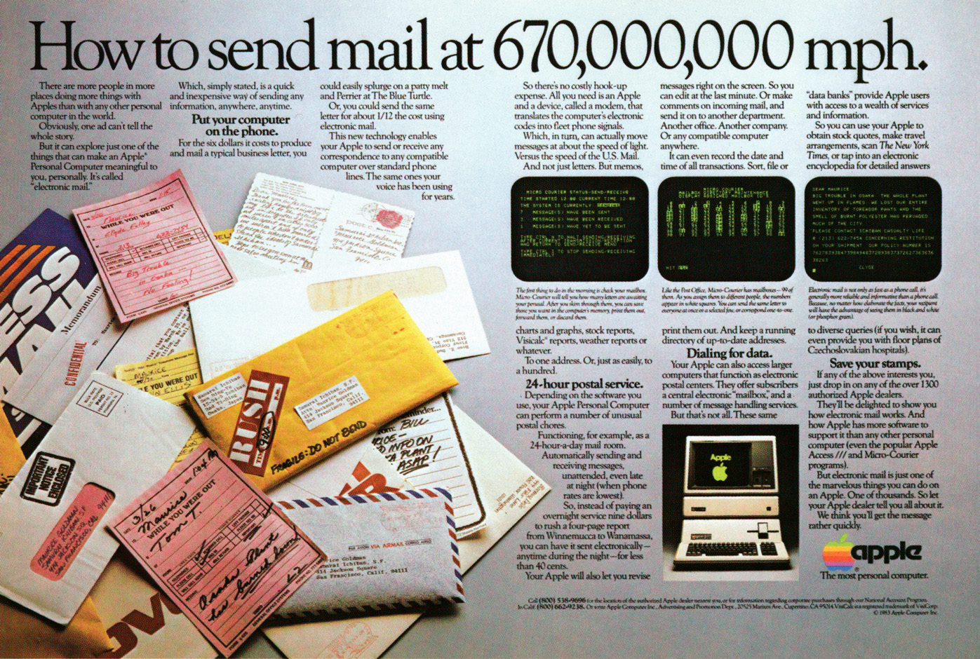 Bár e hirdetés alapfeladata az lett volna, hogy az Apple III számítógépet népszerűsítse, sokkal jobban működött email-ismertetőként; és 1983-ban bizony ez tényleg radikálisan új dolog volt, még az amúgy számítógéppel foglalkozó amerikaiak nagy részének is.