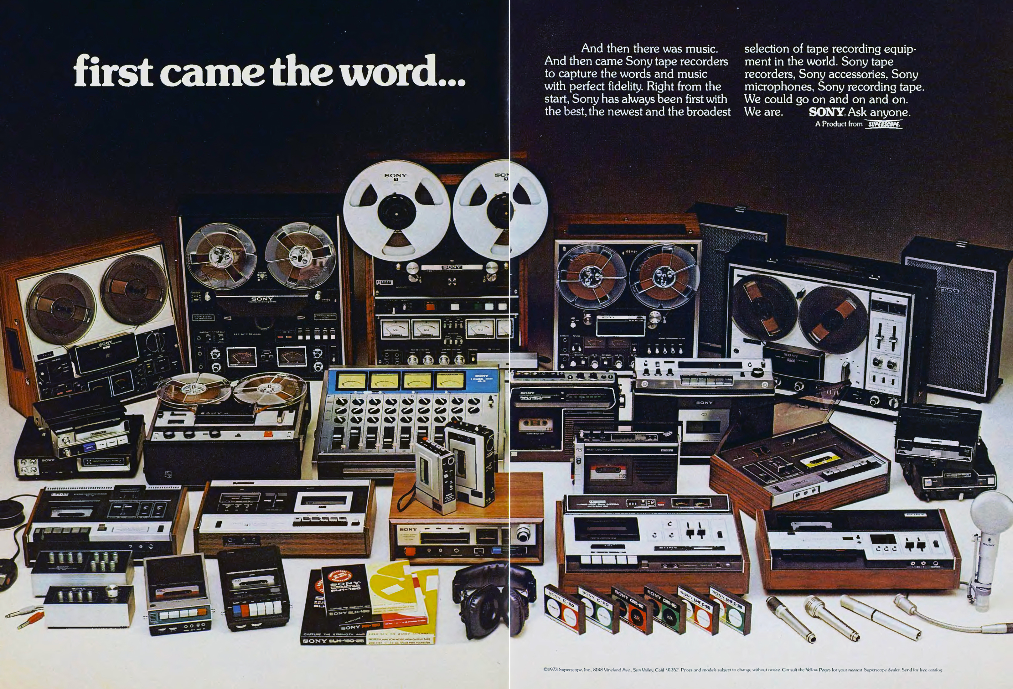 1973 legbitangabb Sony-audiokütyüi egy nagyszerű képen! Faborítás, masszív gombok és persze kazetták és mágnesszalagok minden mennyiségben...