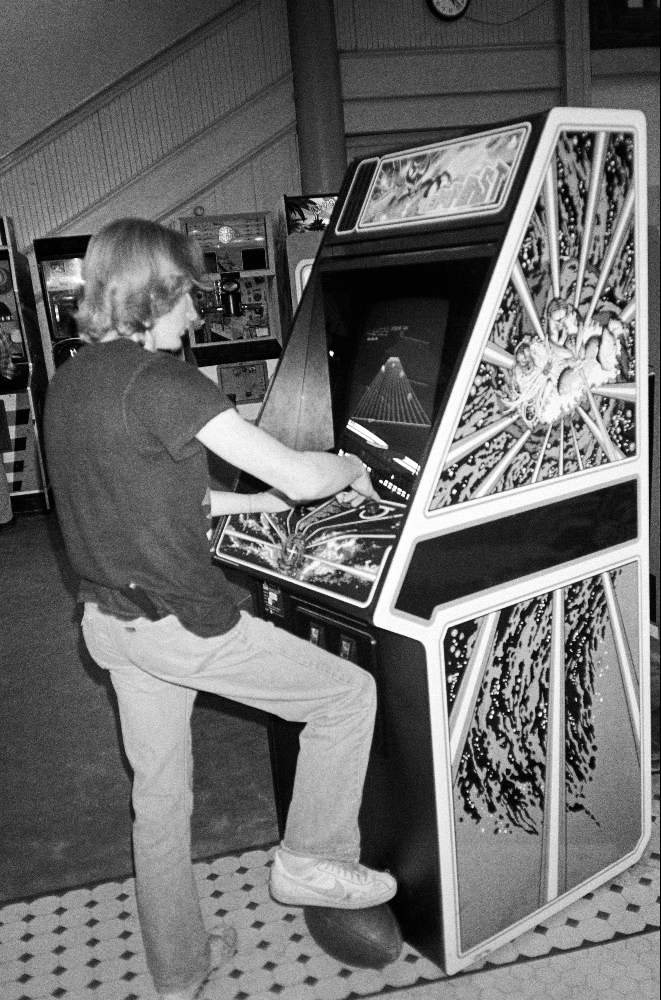 1982-ben néhányan már a játéktermek veteránjainak számítottak, sajátos testtartással és dedikált lábtartó hardverrel. A Tempesttel játszó fiatalember mögött egy igazi ritkaság látható, a Midway által 1970-ben piacra dobott tengeralattjárós-periszkópos gép, a Sea Raider.