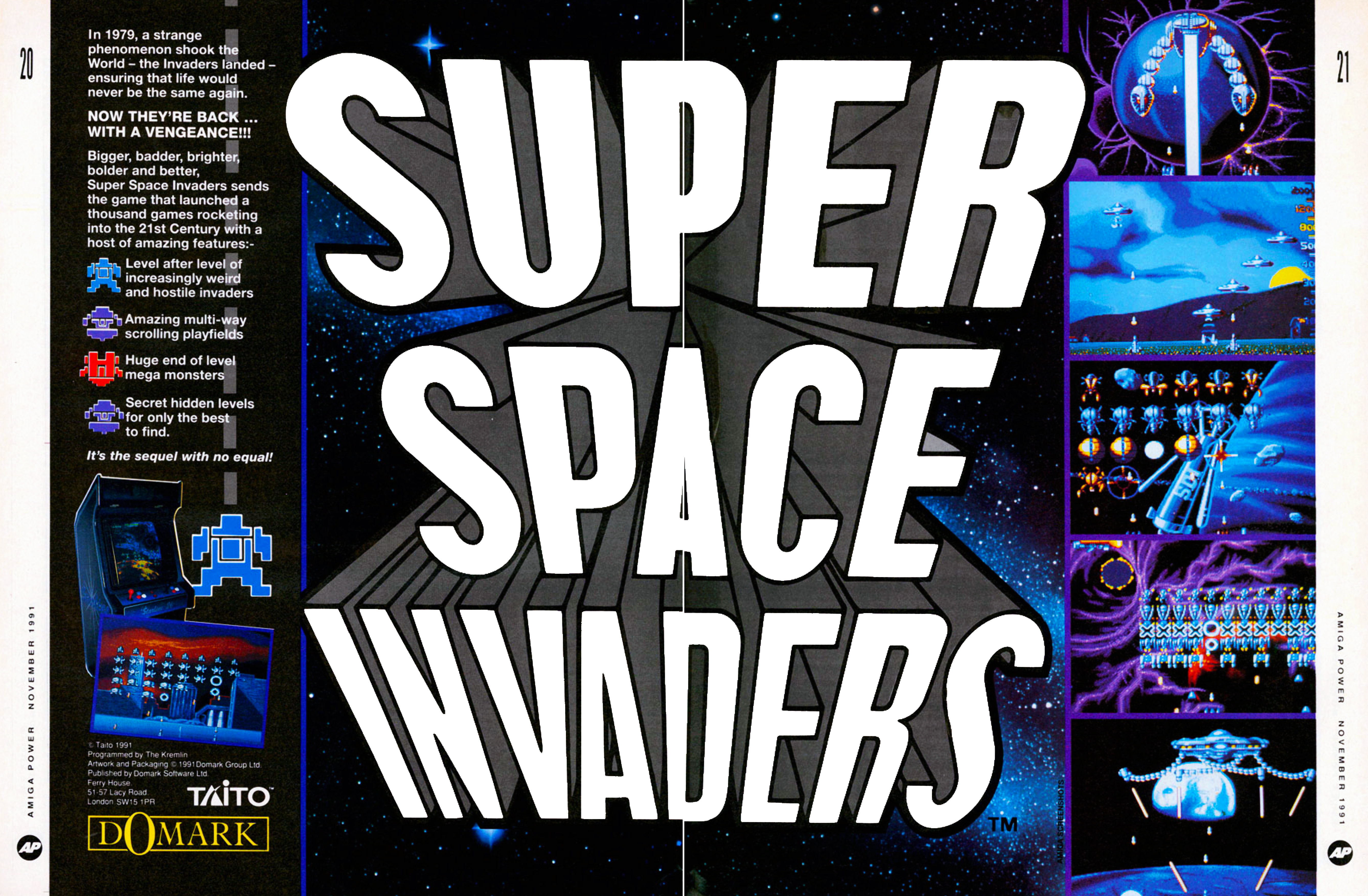 Igaz, az eredeti Space Invaders megjelenési évét nem sikerült eltalálni, de ettől még szimpatikus dolog, hogy 1991-ben ez az akkor már igen korosnak számító széria ilyen jelentős marketingtámogatást kapott. E játék családfája meglehetősen kacifántos: az amigás program lényegében a Majestic Twelve: The Space Invaders Part IV átirata volt. Átiratot mondok, pedig a munkát elvégző london The Kremlin stúdió valami teljesen mást csinált: sztorit (!) pakoltak a játékba, összekeverték a pályákat, az utolsó boss helyére pedig a Commando által ihletett sivatagi környezetet pakoltak. Bővebben itt.