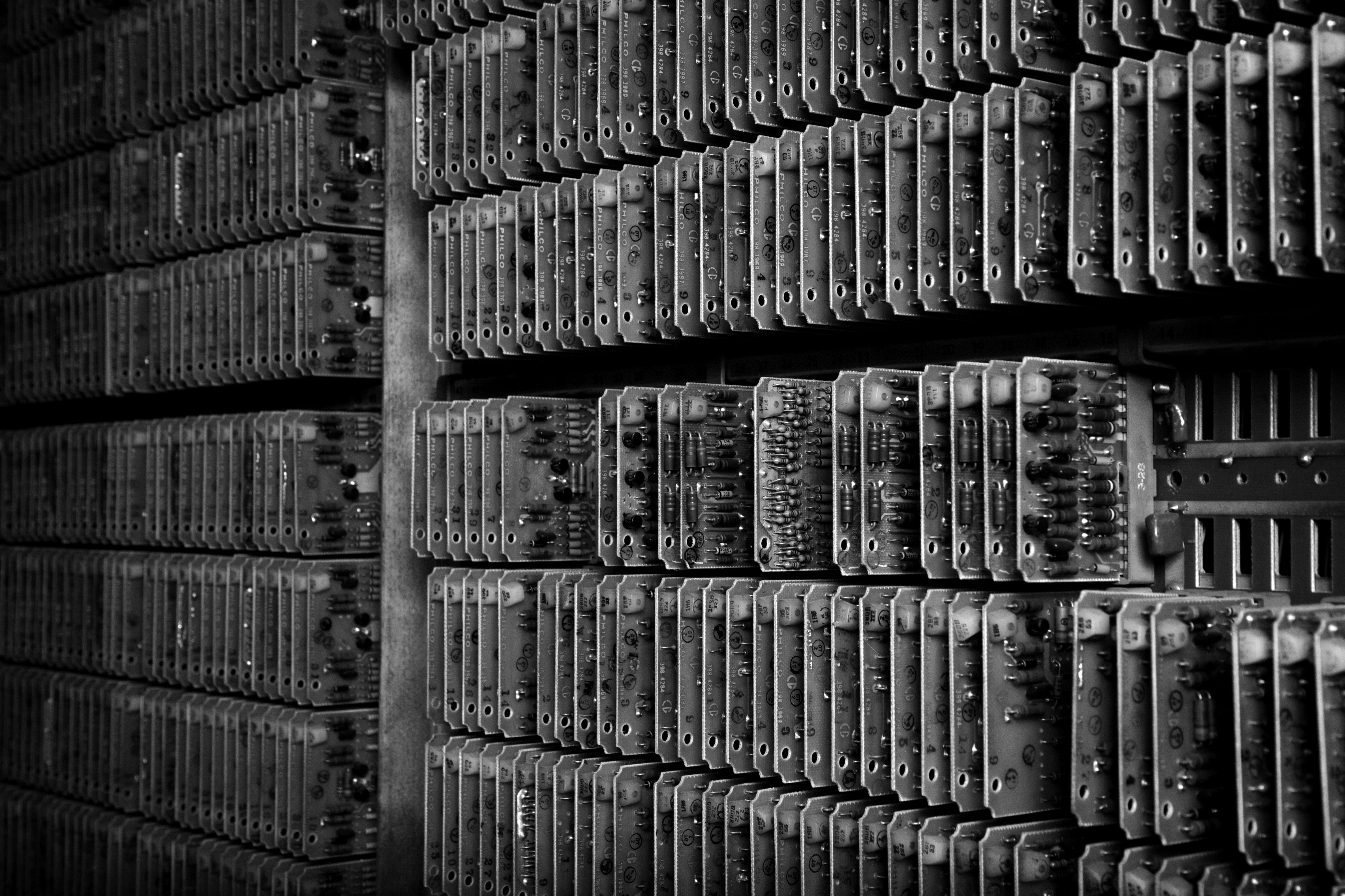 Egy Philco TRANSAC S-2000 Model 212 típusú számítógép szépen rendszerezett tranzisztorai. Ez a számítógép 1962-ben debütált, nem sokkal azt követően, hogy a Ford felvásárolta a pénzproblémákkal küzdő céget – ám mivel e modellből két év alatt mindössze hét darabot sikerült eladni, a Philco bezárásra került, és a Ford végérvényesen az autógyártás felé fordult. A fotót Marcin Wichary készítette.
