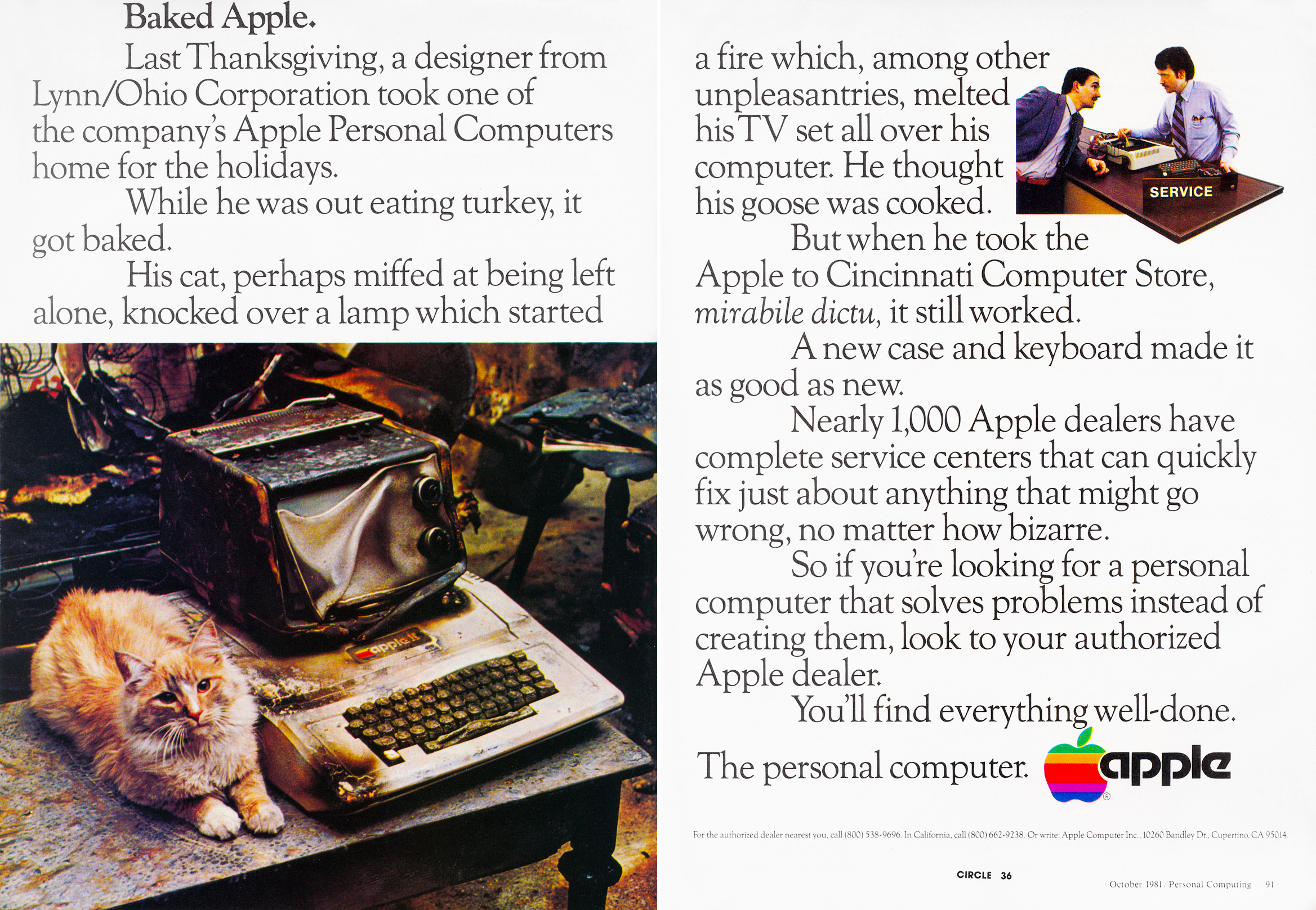 Ez némileg kevésbé drámai sztori, mint az öbölháborúban megégett, és mégis működőképes Game Boy regéje, de a bűnös macska fotója miatt muszáj megtapsolnunk a marketingeseket. És persze az sem maradhat említés nélkül, hogy az Apple már a nyolcvanas évek elején tudta, hogy a minőségi ügyfélszolgálat márkahű vevőket eredményez – részben ez is magyarázata lehet a 43 éves cég csaknem folyamatos sikerének.
