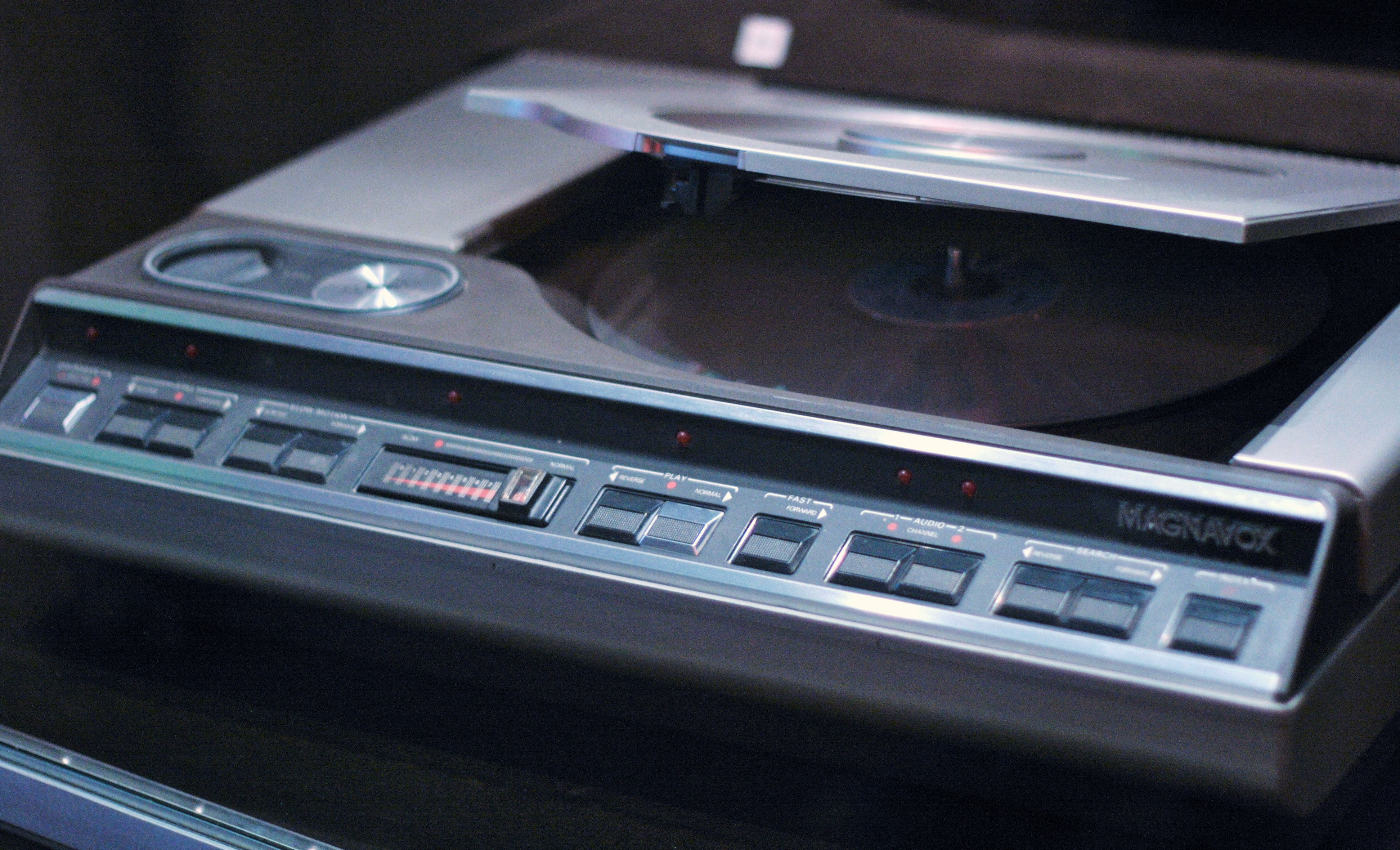 A Magnavox által gyártott Model 8000 DiscoVision készülék, a világ első, otthoni felhasználásra szánt, tömeggyártott LaserDisc-lejátszója. Az 1978 decemberében megjelent készülék futurisztikus kialakítása, és persze a médium képminősége és nemlineáris működése lenyűgözte a világot – aztán persze jött a nagyságrendekkel olcsóbb VHS, amely végül egy egyoldalú háború során legyőzte a LaserDisc-et.