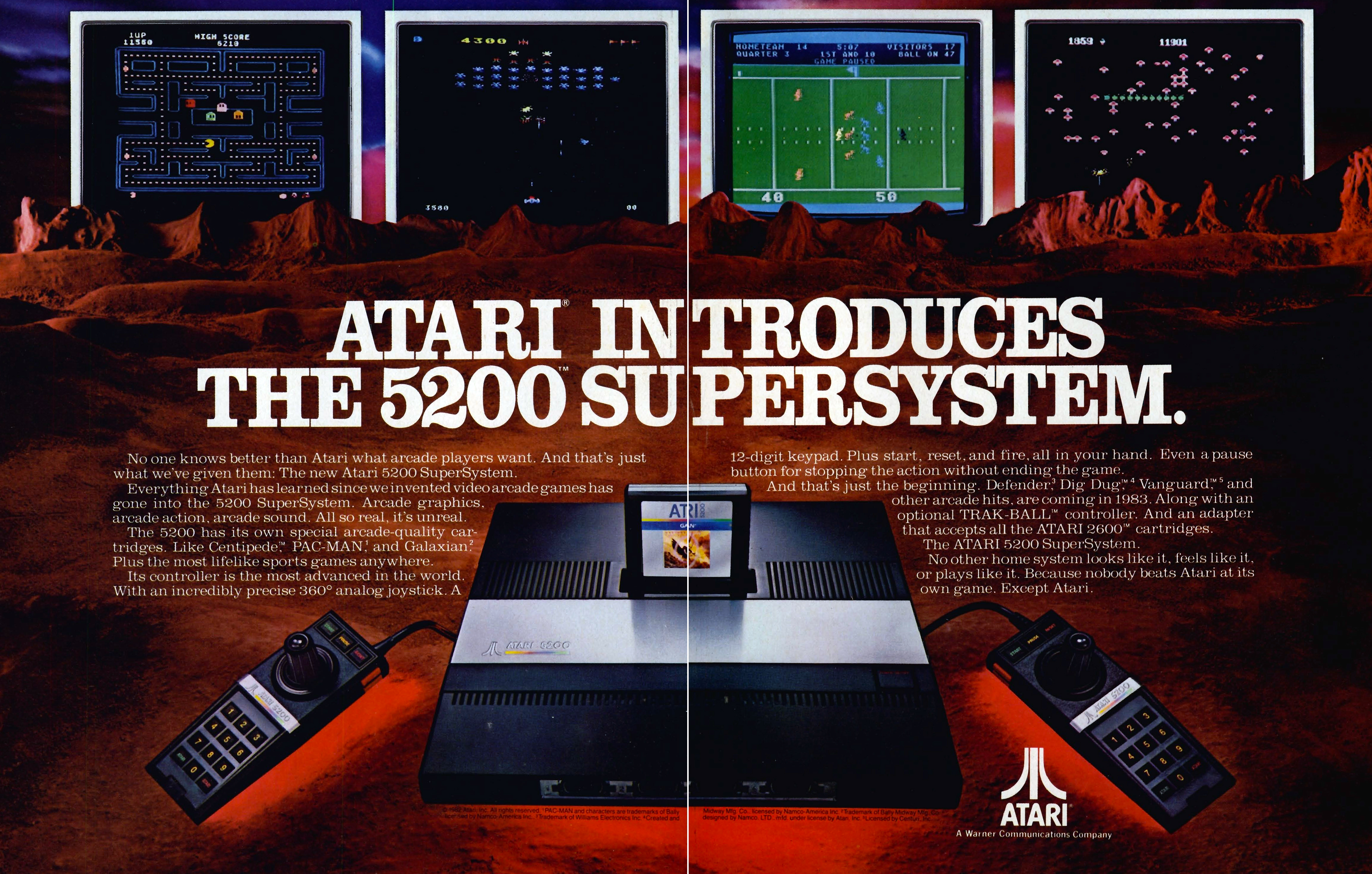 Bár az Atari 5200-ból is elkelt jó egymillió darab, a híres-hírhedt 1983-as amerikai játékpiaci összeomlás e gépet is elsöpörte (ráadásul az Atari 2600, az előd 30 milliós eladási rekordja mellett ez sem tűnhetett magasnak). Az eredetileg Pam kódnéven fejlesztett konzol igazából egy Atari 400-as számítógép volt, amit szoftveresen tettek inkompatibilissé azzal. Azt, hogy az Atarinak ekkor gőze sem volt róla, hogy mit is akarnak valójában a játékosok (állítson bármit is e hirdetés) az is bizonyítja, hogy az 5200-as nemhogy alapból nem volt kompatibilis a 2600-as játékokkal, de az azok használatát lehetővé tevő fizetős kiegészítő nem e konzolhoz, hanem a rivális Intellivision II-höz jelent meg.