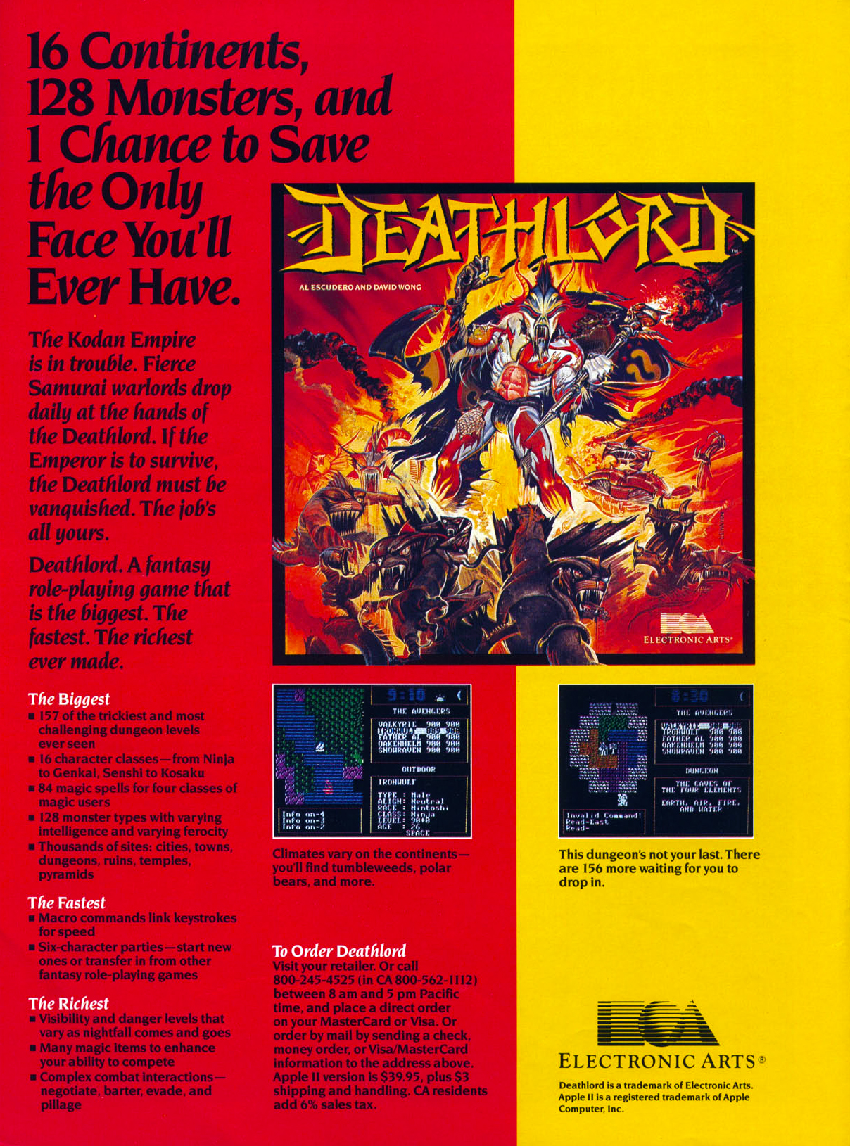 Nem újkeletű gondolat, hogy a fejlesztők és a kiadók a puszta méretekkel menőznek – a Deathlord például a nyolcvanas évek talán legnagyobb alapterületű RPG-jeként gyakorlatilag nem volt végigjátszható. A 16 kontinens és a 157 dungeon-szint felderítése normál körülmények közt is több száz órát venne igénybe, de a program igen szigorú: minden lépést követően, illetve minden harc előtt és után után automatikusan ment, így a haláloknak tényleg van súlya. A városokban fel lehet ugyan támasztani az elesett társakat, de ha az egész csapat elpatkol, akkor bizony csak egy megoldás marad: egy új partit kreálni, feltápolni, és a korábbi legények után küldeni...