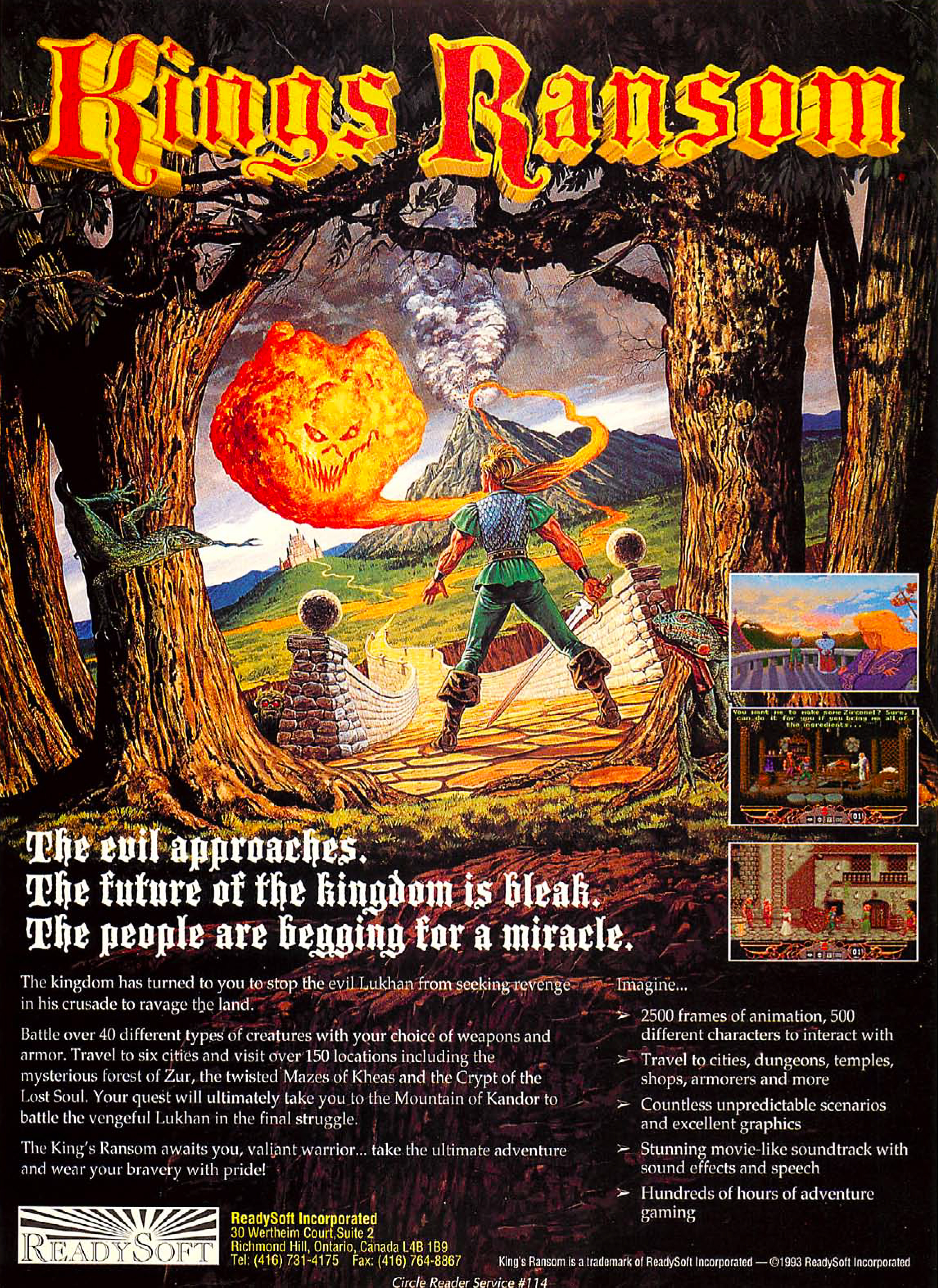 A hirdetés úgy beszél a King’s Ransomról, mintha az már meg is jelent volna (és mintha nem kellene a címbe aposztróf), pedig hát a kanadai Readysoft játéka végül nem látta meg a napvilágot. A cég komoly pénzügyi gondokkal küszködött, így kénytelenek voltak összeolvadni egy másik kiadóval, és ennek során több, küszöbön álló megjelenésüket is törölték – és több más program mellett ennek áldozata lett ez a DOS-ra és Amigára készült játék is.
