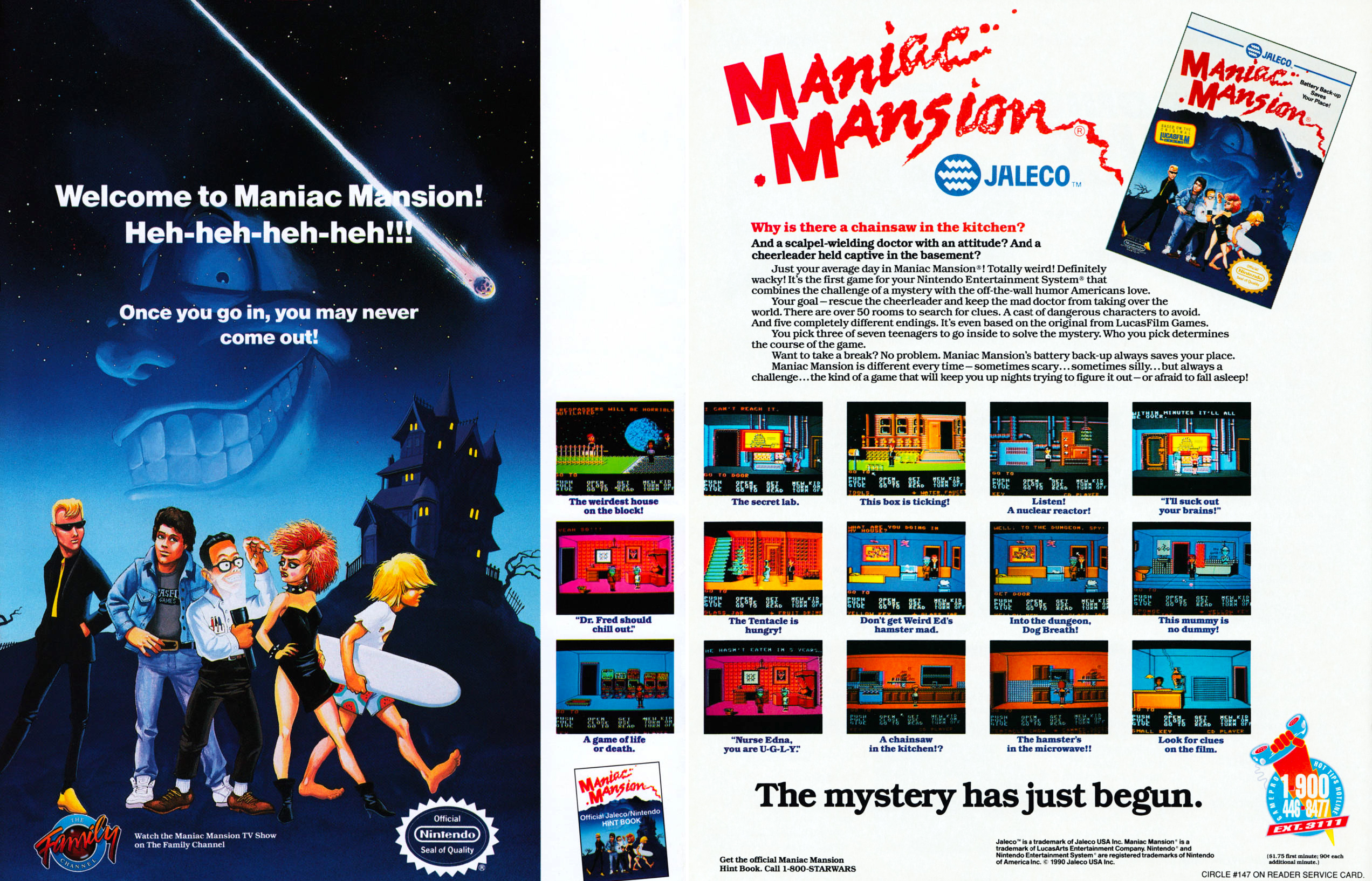 1) Mindenkinek nyomatékosan és ismételten felhívnám a figyelmét, hogy a Maniac Mansion alapján egy három évadot megérő élőszereplős tévésorozat készült, amit ma teljes egészében meg lehet nézni YouTube-on (évadok: 1, 2, 3)!