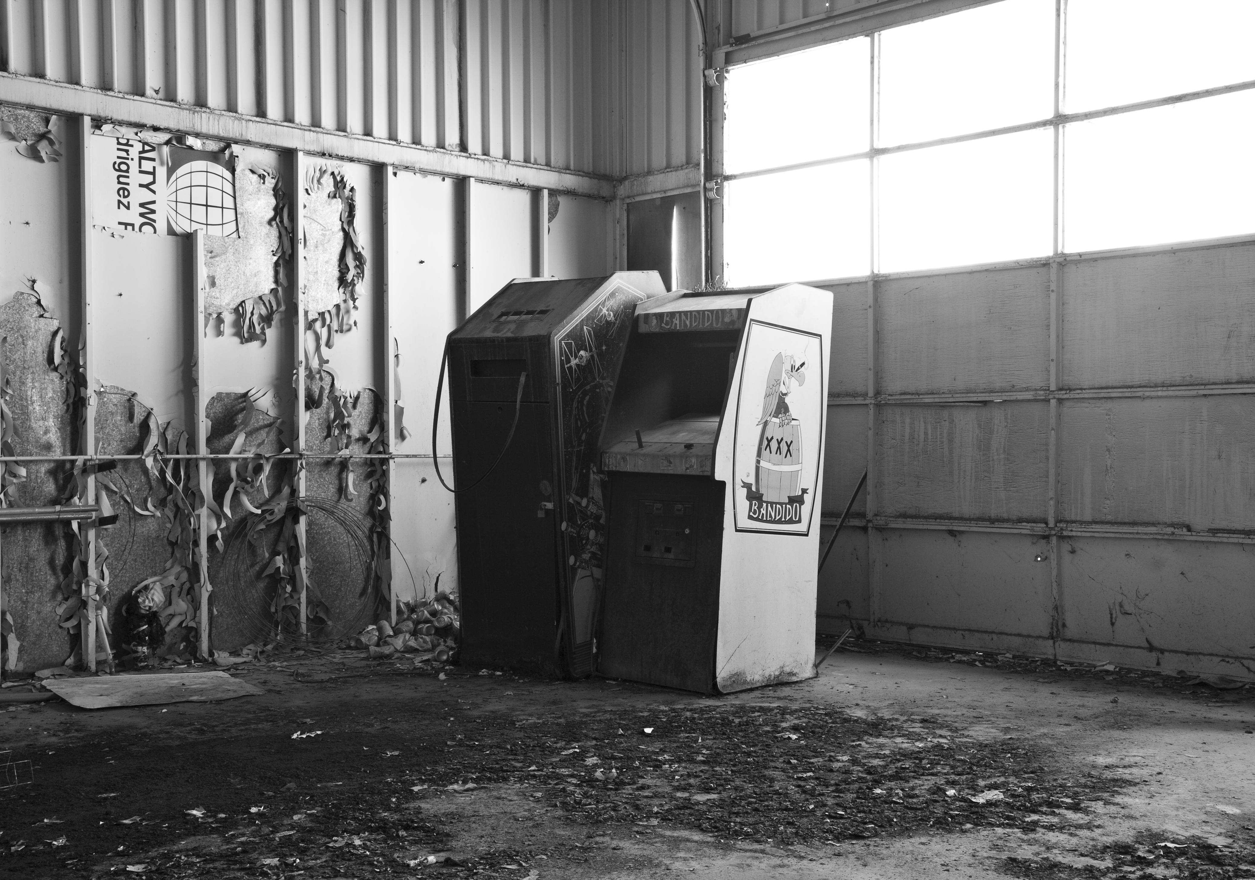 Egy texasi raktárban évtizedek óta porosodó-rozsdásodó játéktermi gépek 2011-ben. A képen egy Star Wars és egy Bandido automata látható. Egyik sem kifejezetten ritka, de így is igen szomorú ezt a pusztulást látni.