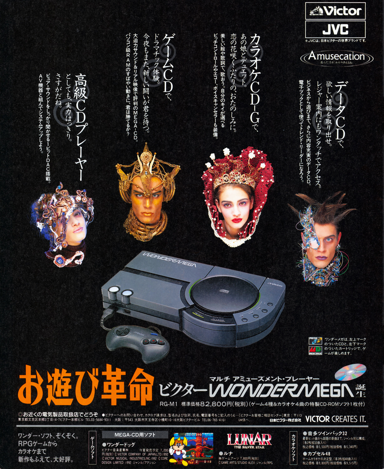 A Wondermega egyike az alig ismert Sega-konzoloknak; részben annak köszönhetően is, hogy valójában nem is a Sega műve. A Mega Drive-ot, Mega CD-t és egy sor high-tech audiókomponenst tartalmazó Wondermegát a JVC, illetve annak Victor nevű egyik leányvállalata tervezte. Bár az egység rémületesen drága volt, korának talán legjobb nem-professzionális CD-lejátszója volt, és e mellett a karaoke-támogatástól a profi MIDI-outputig egy csomó érdekes funkcióval is rendelkezett. A hirdetésen levő négy bizarr fej is a konzol négy fő funkcióját akarja jelképezni: a CD-lejátszást, a játékokat, a karaokét, illetve az adat CD-k kezelését.