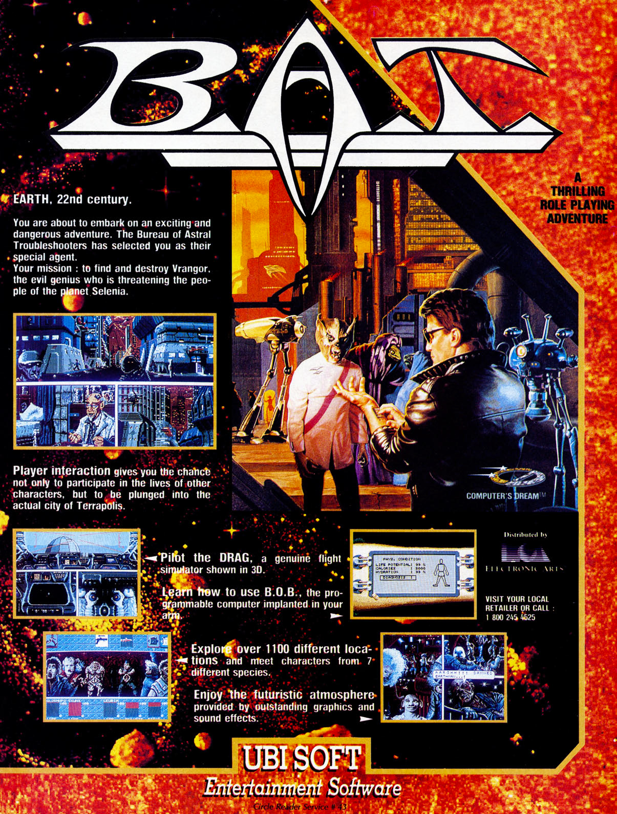 Bár a B.A.T. grafikája (beleértve a dobozképet és az e hirdetésen használt illusztrációt is) valami egészen lenyűgöző volt, de a cyberpunk RPG-nek behirdetett program minden más téren óriási csalódásnak bizonyult.