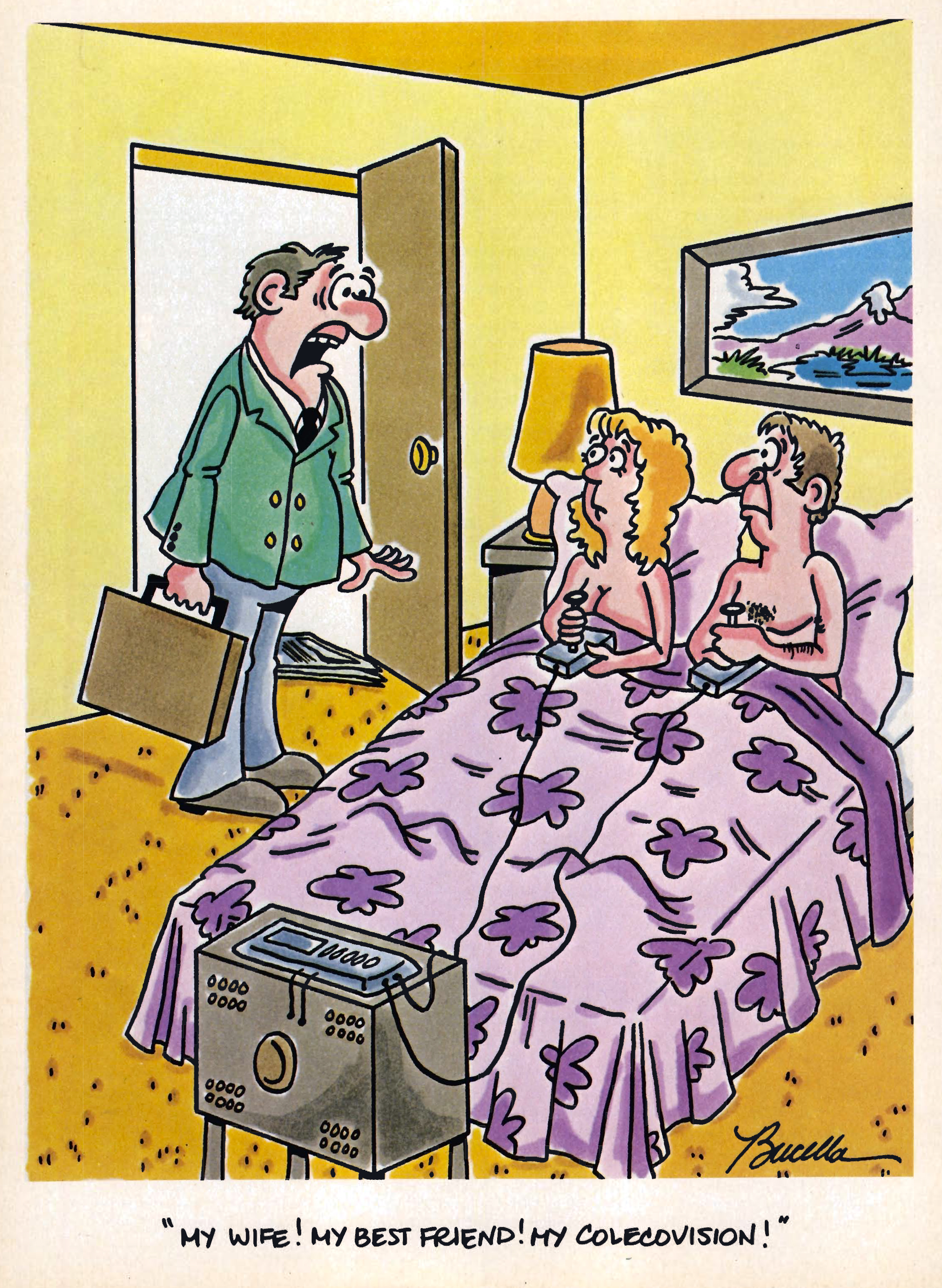 Azt hiszem, mindannyian azonnal látjuk ennek a máskülönben kacagtatóan humoros képnek a nagy hazugságát: a ColecoVision kontrolleréhez fele ekkora madzag sem járt!