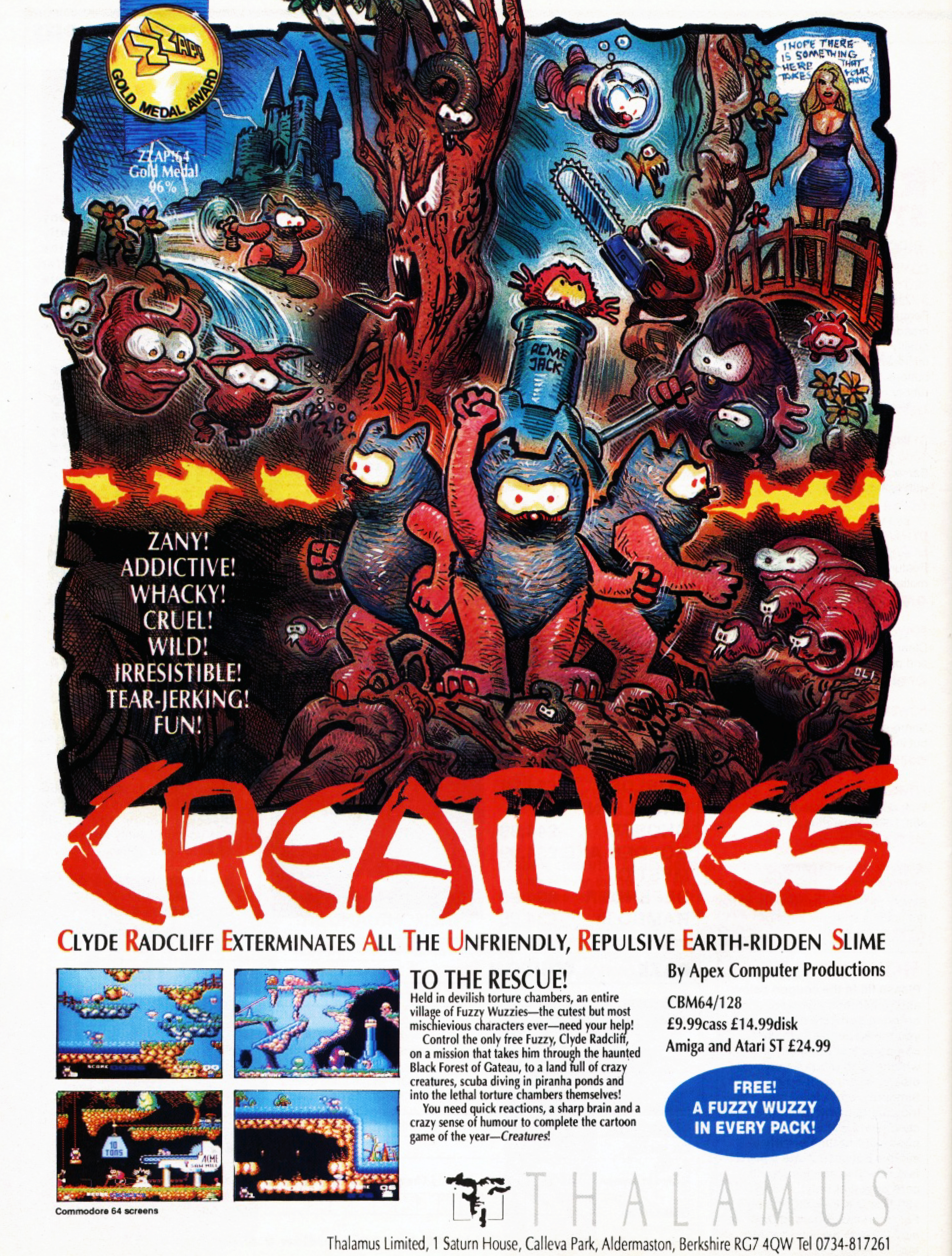 A Commodore 64 egyik legendás sikerjátéka a Creatures volt; a Rowlands-testvérek által összerakott fura platform-puzzle játék a lelkendező cikkek nyomán itthon is eljutott csaknem minden játékoshoz. Azt azonban feltehetően kevesen tudják, hogy a cím maga egy rövidítés – a hirdetés azonban lerántja a leplet a betűk igazi értelméről.