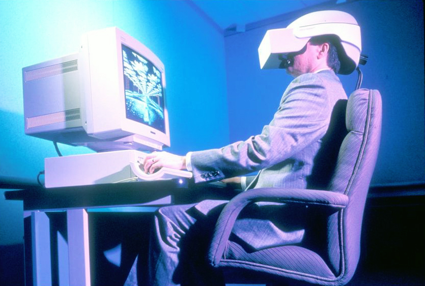 Sajnos a kép pontos eredete nem ismert, egyes források szerint egy, az Intel által készített image-fotóról van szó. A cég a kilencvenes évek közepén már kokettált a VR-technológiával, tehát e teória akár korrekt is lehet. Mindenesetre az öltönyben egy ránézésre legalább 17 kilós, és talán a szájon keresztül az agyhoz csatlakozó sisakot viselő úriember látványa még ma is megdöbbentő.
