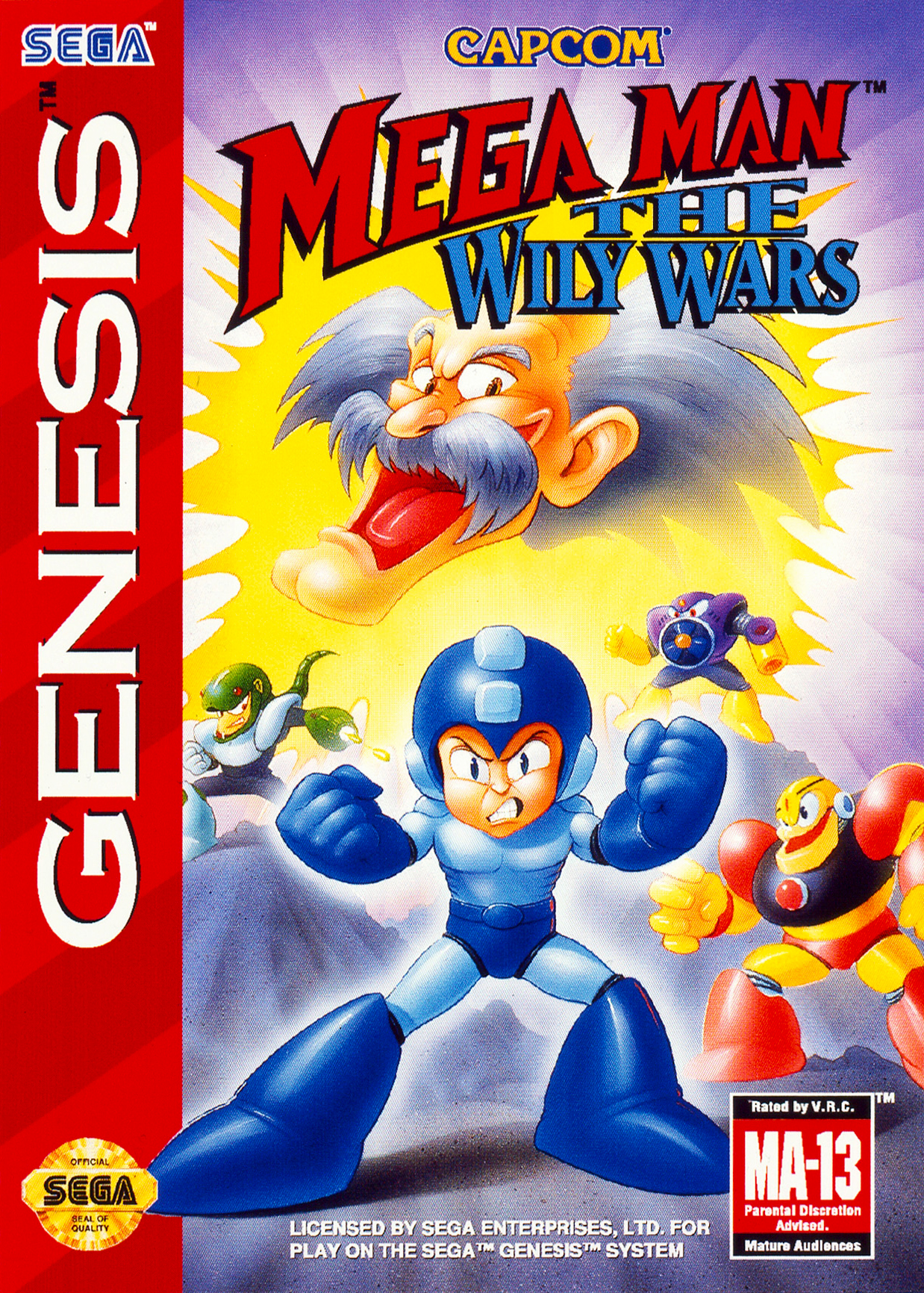 A Wily Wars alcímmel felruházott program az első három epizód kicsit megszépített gyűjteménye volt. A kiadó amerikai szárnya vélhetően nem tudott erről a tervről, így egy ideig ezt is rendes folytatásként kezelték, még egy – meglehetősen randa – borítót is rajzoltattak ahhoz. Amikor azonban kiderült, hogy ez nem egy „igazi” új játék, a fizikai megjelenést lefújták, és csak digitálisan terjesztették a programot, a Sega Channel rendszeren keresztül árulva azt. Európát nem zavarta a retró, és az eredeti japán illusztrációt felhasználva itt dobozosan is megjelent a program.