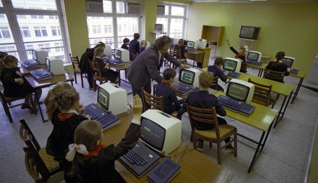 Egy moszkvai iskola egyenruhás nebulói ismerkednek a számítástechnikával az 1986-os tanév során. A gépek érdekes módon nem a szovjet ipar remekei voltak, hanem a lengyel Mezra Elzab vállalat Meritum típusú, kifejezetten oktatásra szánt PC-i. A cég amúgy meglepő módon túlélte a rendszerváltást, meg minden mást is, ami azóta történt, és ma is jól megy nekik: pénztárgépeket és POS-rendszereket gyártanak.