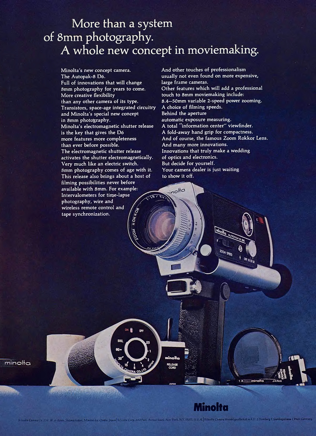 Ez a Minolta-gyártmányú videokamera ugyan az űrkorszakból származó integrált áramköreivel akarja eladni magát, pedig az elegáns, szerintem a helyét még ma is megálló kinézetére is büszke lehetne.