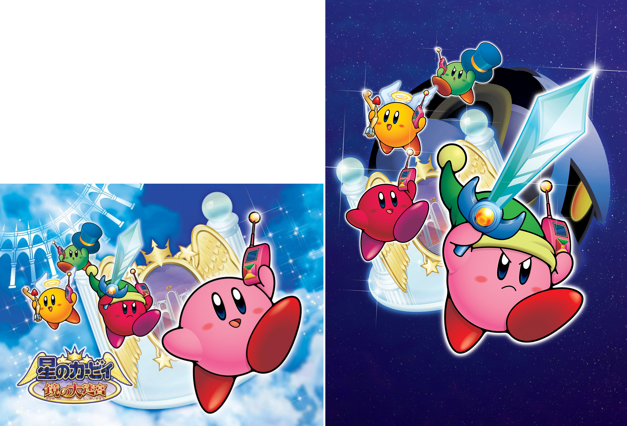 Az talán közismert, hogy a 2010-es évekig a Japánban mindig aranyosan mosolygó Kirby játékainak nyugati kiadásaira elkerülhetetlenül morcossá vált. Az ok egyszerű: a Nintendo amerikai marketingesei nem hitték el, hogy az eredeti, végtelenül aranyos verziók náluk is sikert arathatnának. Néha emiatt teljesen új festmény készült a nyugati kiadások borítóira, máskor viszont, például a Kirby & the Amazing Mirror esetében is, sokkal egyszerűbb megoldást választottak: egyszerűen átszínezték és kicserélték az eredeti artworkön levő két karaktert.