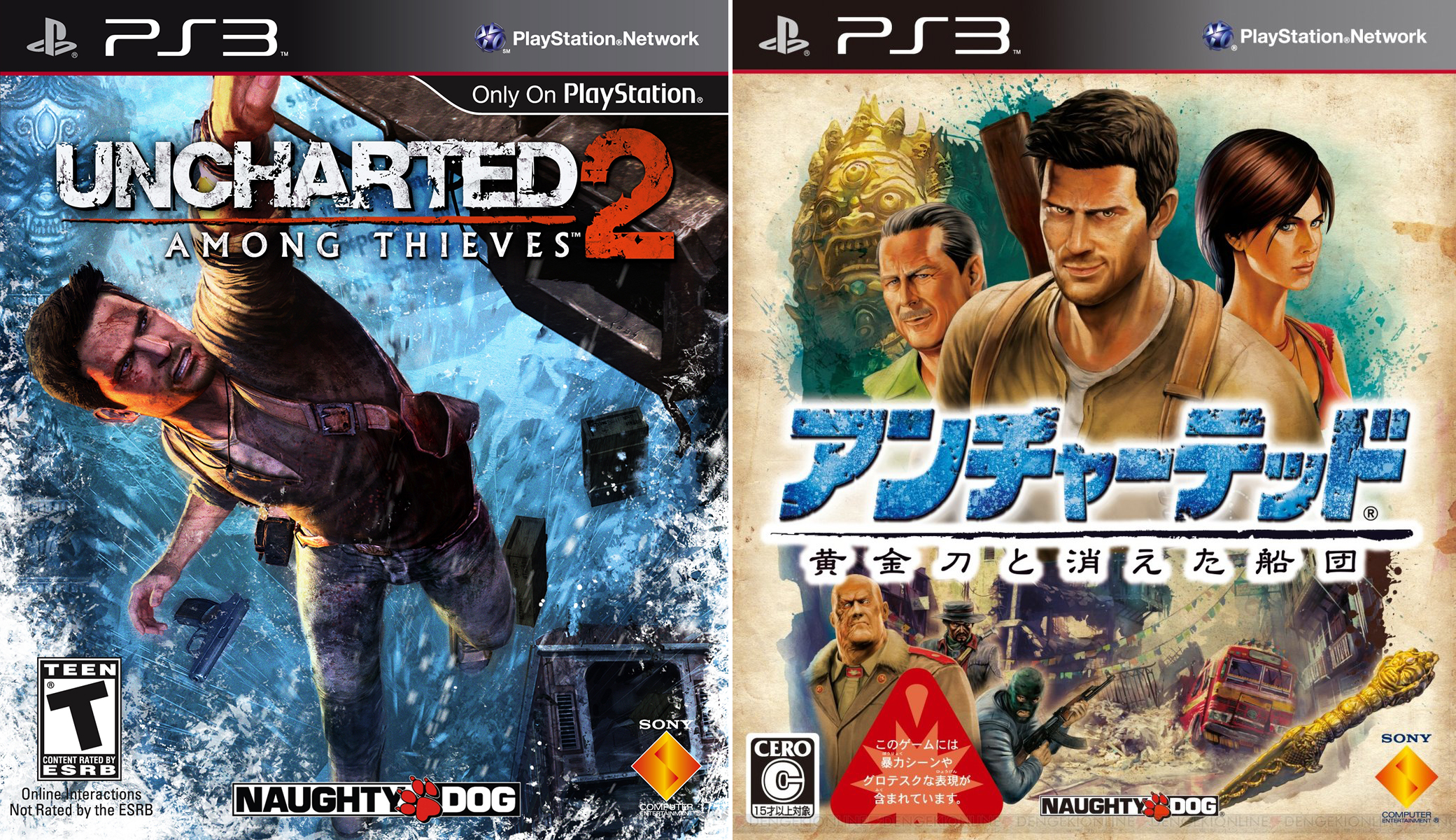 Az Uncharted 2 filmplakát-szerű japán borítója fantasztikus. Oké, majdnem fantasztikus: a három főszereplőt talán nem tökéletesen sikerült eltalálni. Nathan sem teljesen olyan, mint a „valóságban”, Sully arca mintha összetöpörödött volna, Chloe pedig egy igazi zsiráfnyakkal lett gazdagabb. Extra érdekesség, hogy a sorozat – talán itt is mozis ihletre? – Japánban nem kapott sorszámozást, és ezt a hagyományt mind a mai napig tartják.