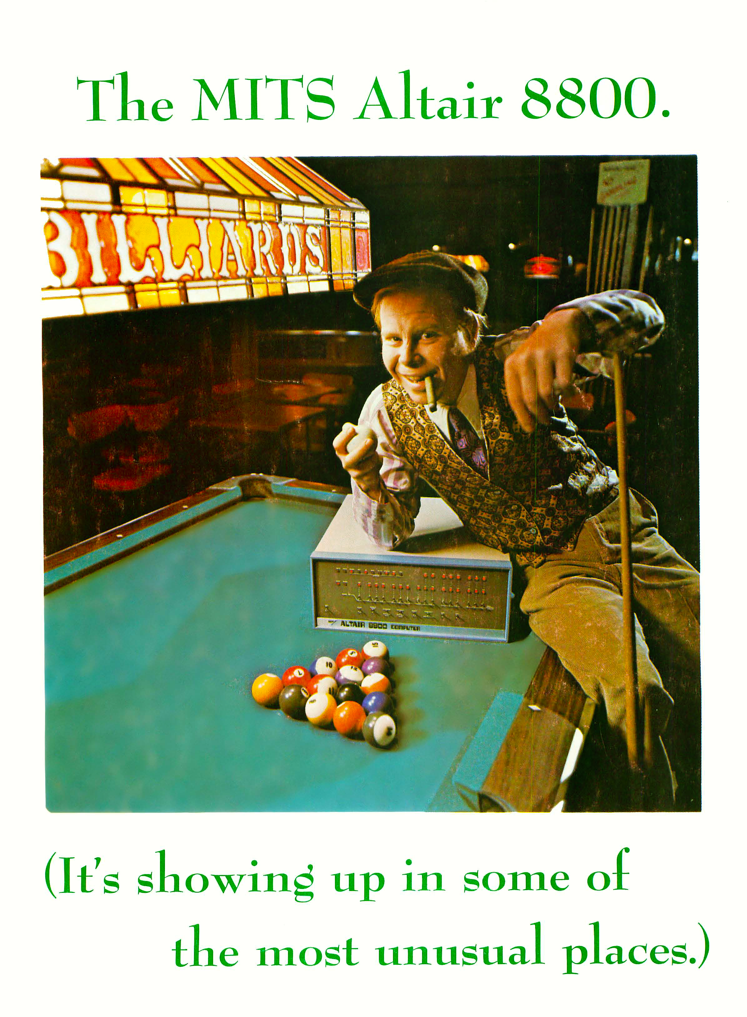 Az Altair 8800 az első sikeresnek mondható, tömeggyártott amerikai számítógép volt, amit sok-sok év távlatából az egész iparág népszerűvé tételével is sűrűn megvádolnak. Ez a nagyszerű teljesítmény sem magyarázza azonban meg ezt a hirdetést – egyszerűen nem tudom felfogni, hogy ez a szivarozó jampec miként adta volna el a gépeket. (Ha híres ember lenne, sajnálom, nem ismertem fel.)