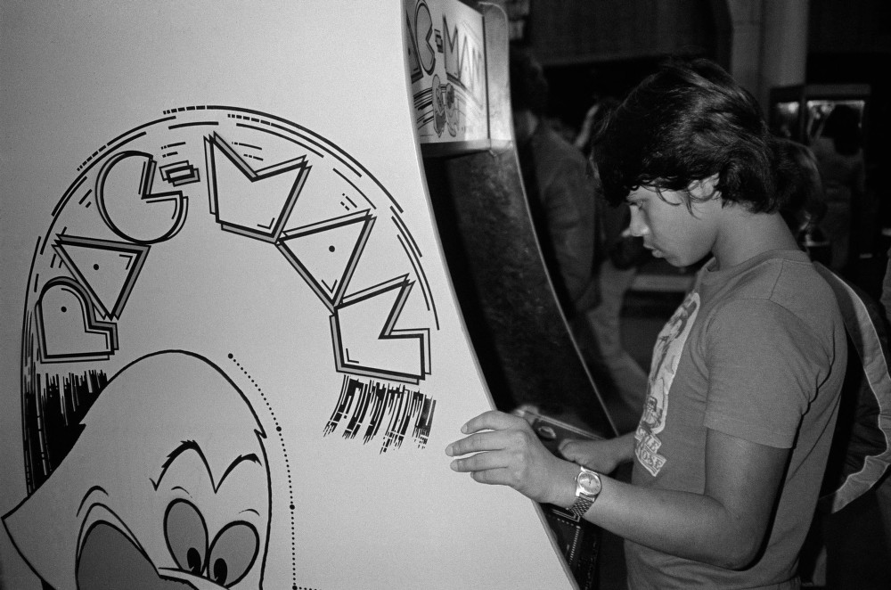 Mivel a Pac-Manhez nem kellett gombokat nyomni, a legtöbb játékos ezt a pózt vette fel a program gyűrése közben – így lehetett igazán stabilan lecövekelni az automata előtt. Sok automata ezért ezen a helyen kopott ki legelőször. A fénykép 1981-ben készült San Francicóban; a fotós Ira Nowinski volt.