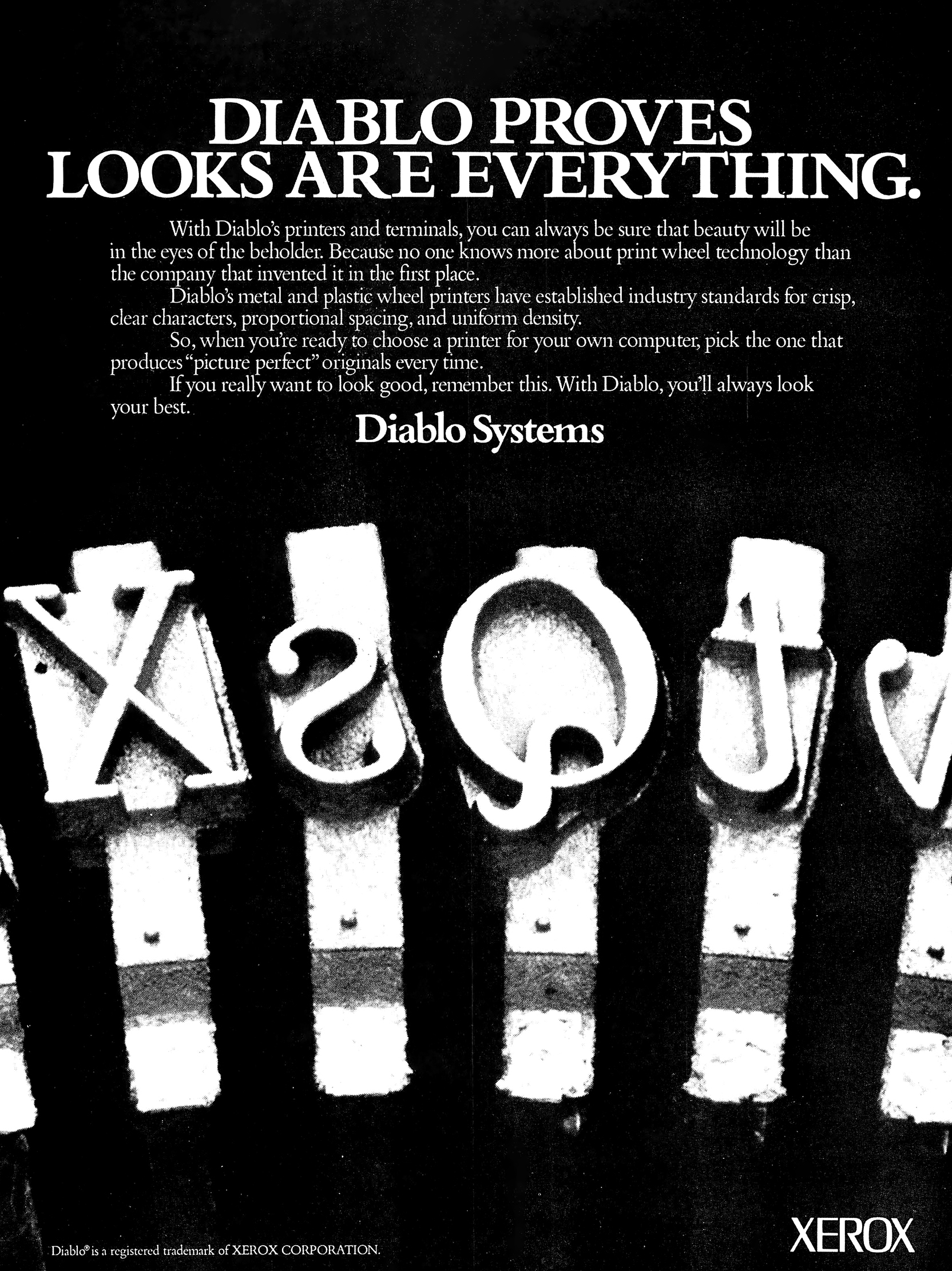 Bár azt hittem, hogy valami csúsztatás van a dologban, az úgynevezett margarétafejes nyomtatót tényleg a Diablo Systems, illetve egész pontosan a Dr. Andrew Gabor által vezetett mérnökcsapatuk találta fel. E technológiával sikerült elérni a másodpercenkénti 30 karakteres nyomtatást, megduplázva a korábbi rekorder, az IBM Selectric megoldás tempóját.