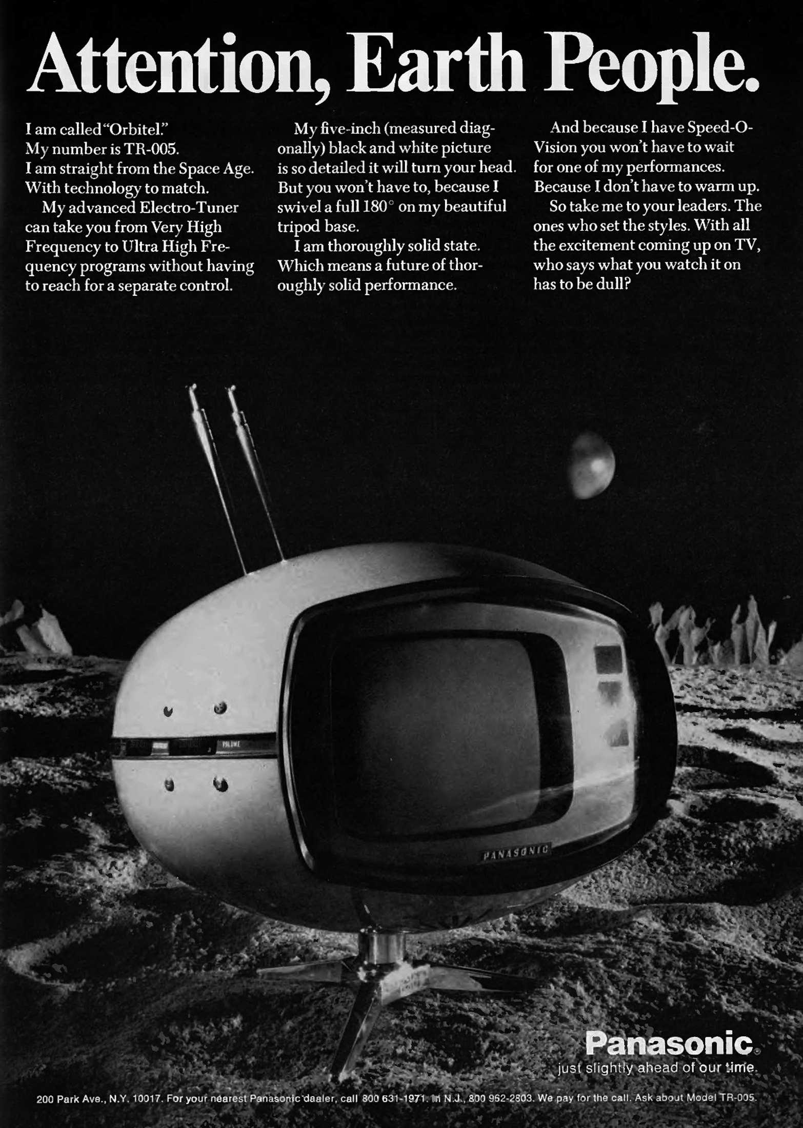 Bár ma nehezen lehetne eladni egy 5 inch-es képernyővel szerelt – és természetesen fekete-fehér – televíziót, az biztos, hogy a Panasonic Orbitel emlékezetesen nézett ki. Igaz, a JVC hasonló modellje talán még gyönyörűbb volt...