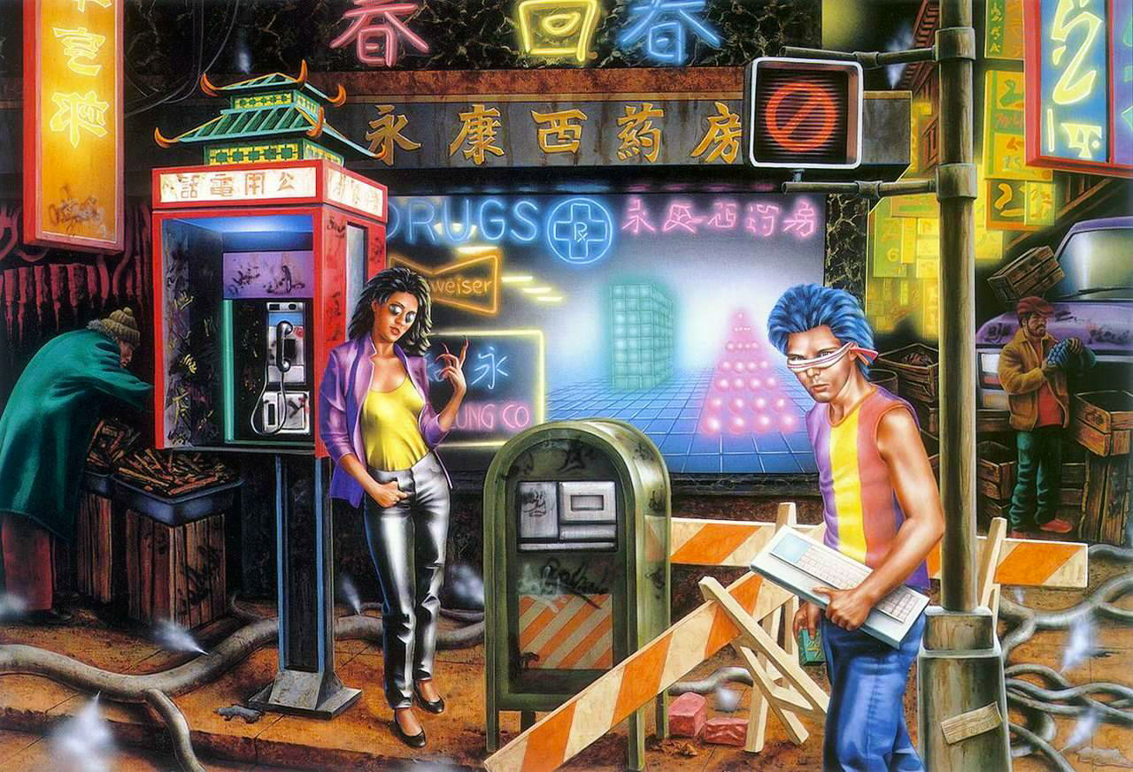 A Neurománc első keménykötésű kiadásának publikálási jogait Amerikában végül a Phantasia Press szerezte meg. Az 1986-ban esedékes premierre új borítót is rajzoltattak, méghozzá Barclay Shaw grafikussal, feltehetően a lelkére kötve, hogy mindenképpen ábrázolja a japán környezetet, a modern technológiákat, valamint a két főszereplőt: a hacker Case-t és a kőkemény Mollyt. Ebből ez sült ki.