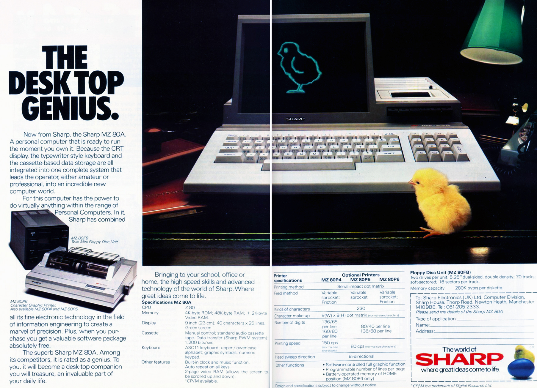 Hát, talán azon a digitális csibén még dolgozhatott volna kicsit az illetékes, ha már azzal akarták eladni a számítógépet; no és talán a masina árát sem ártott volna feltüntetni, de máskülönben 1982-höz képest ez így is egy fantasztikusan vonzó reklám.