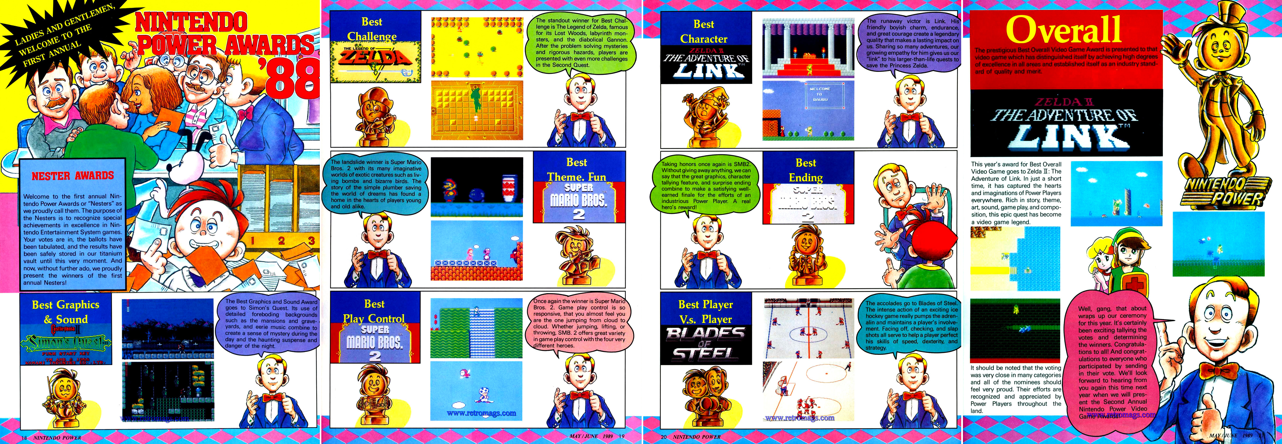 A Nintendo Power éves díjazottjai 1988 legvégén. Mivel az újság nem sokkal ezt megelőzően indult, nem ragaszkodtak igazán a naptárhoz, így a „legjobb kihívás” trófeát az Amerikában 1987-ben megjelent első Legend of Zelda kaphatta – amely tényleg sokkal játszhatóbb volt, mint az év legjobbjának járó díjat megkaparintó folytatása.