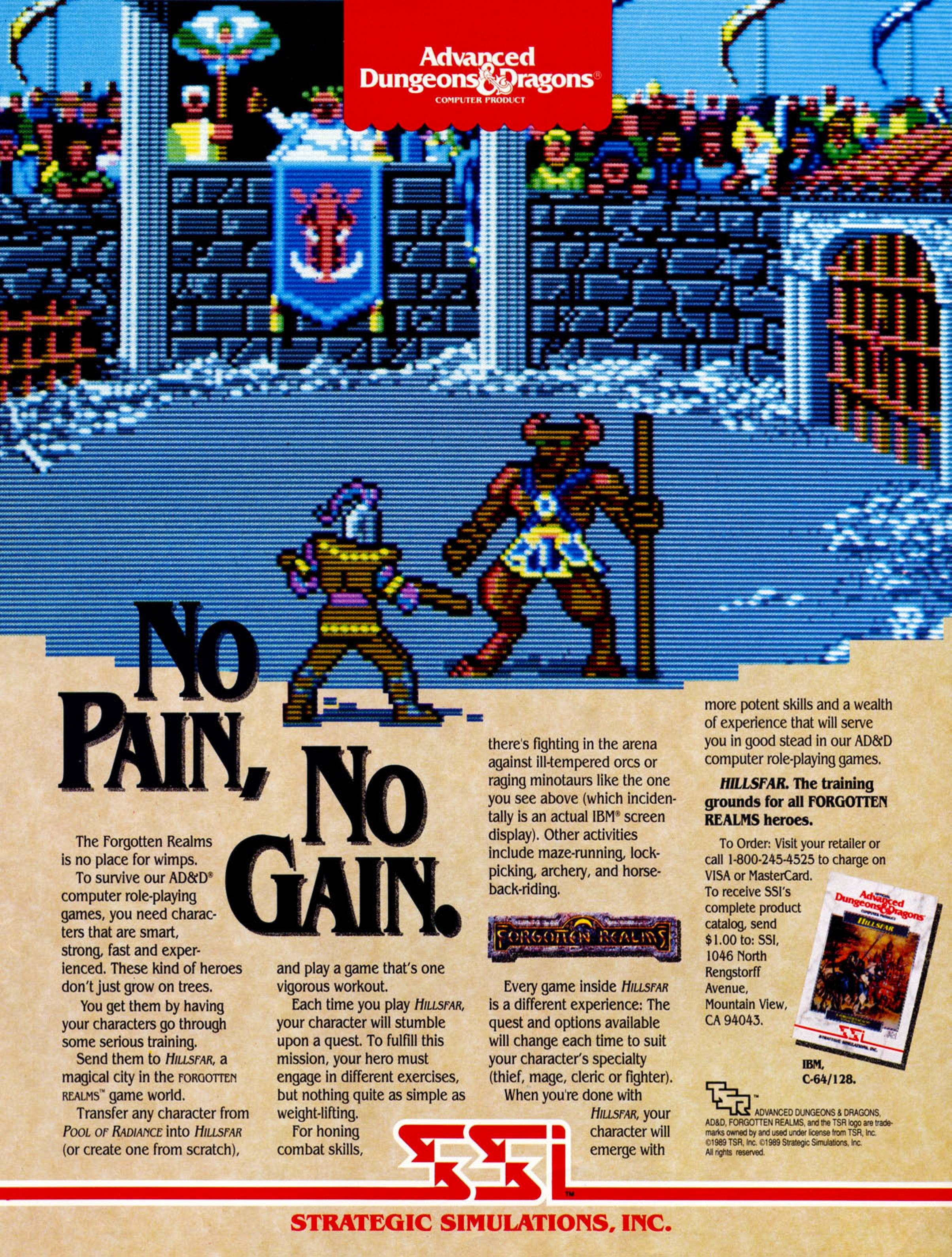 A Hillsfar érdekes kísérlet volt a Pool of Radiance-szel éppen története legnagyobb sikerét arató SSI számára. Igaz, az „érdekes” ebben az esetben a „meghökkentően ostoba”-fajta érdekes volt, hisz a rajongók által várt Dungeons & Dragons-szimuláció helyett egy legfeljebb közepes minijátékokra építő buta, és végtelenül rövid program lett az eredmény. A Westwood egyik legócskább játéka extra pofonként teljesen varázslatmentes: a háttérsztori miatt sem a mágusok, sem a papok nem tudnak varázsolni a programban, így semmi értelme ilyen karaktert indítani!